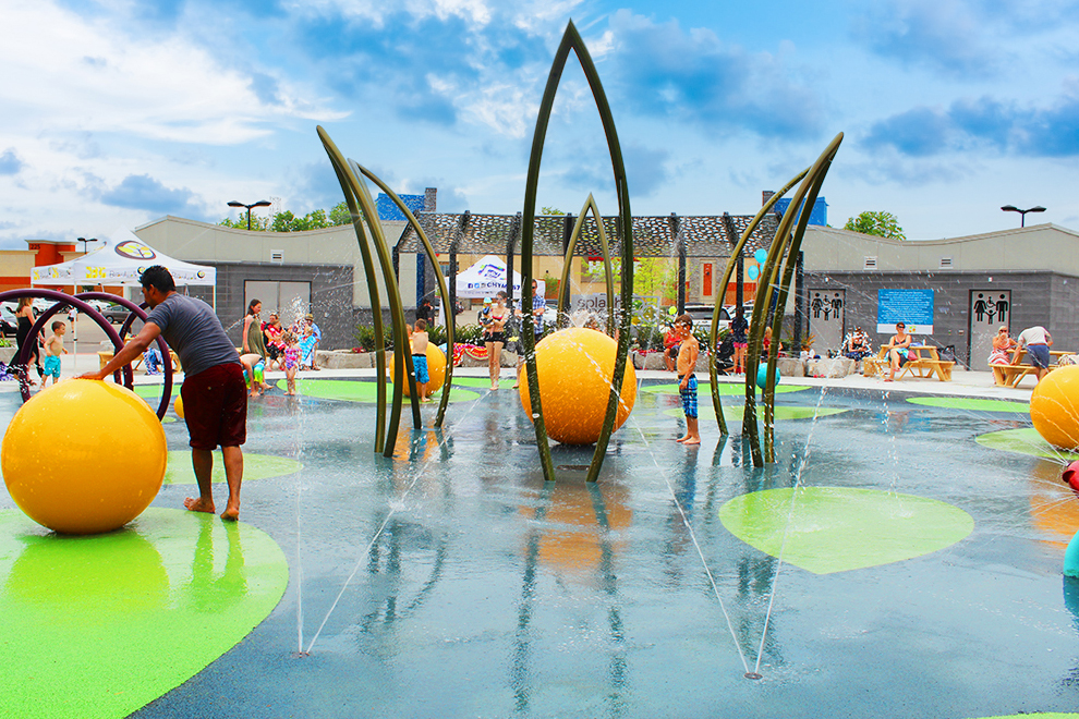 景観と融合を目的とした立体的な噴水モニュメントです。夏場は賑やか水遊びエリアとして、また冬場においては噴水含めモニュメントとして商業施設等にも通年で魅力的な空間を作り出します。